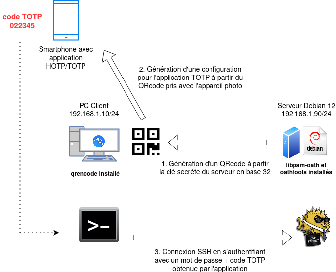 2. Schéma de principe concernant la configuration de TOTP sur un système Debian