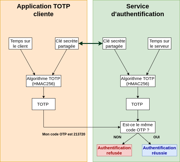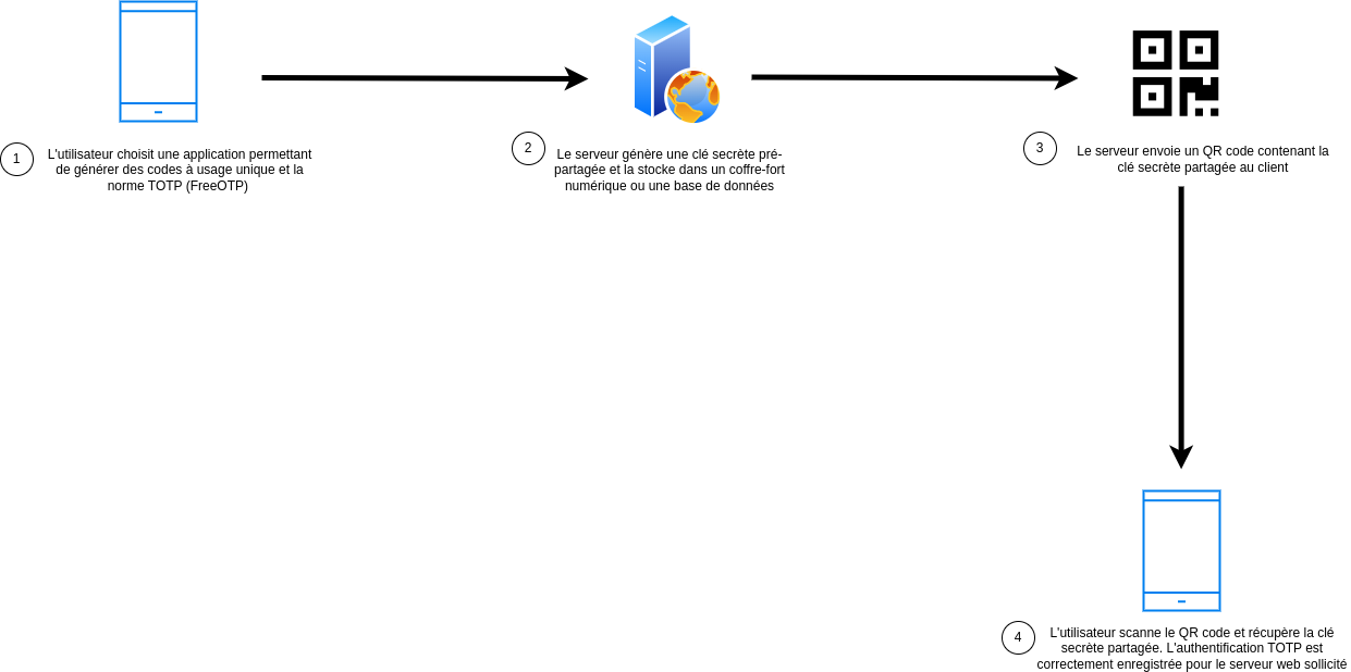 Dans le schéma ci-dessus, nous constatons que la clé secrète est commune et qu’elle a été transmise au client lors de la phase d’enregistrement. L’avantage de passer par une clé de sécurité est de pouvoir stocker cette clé secrète sur un matériel spécifique et non directement sur le smartphone ou sur l’ordinateur client.