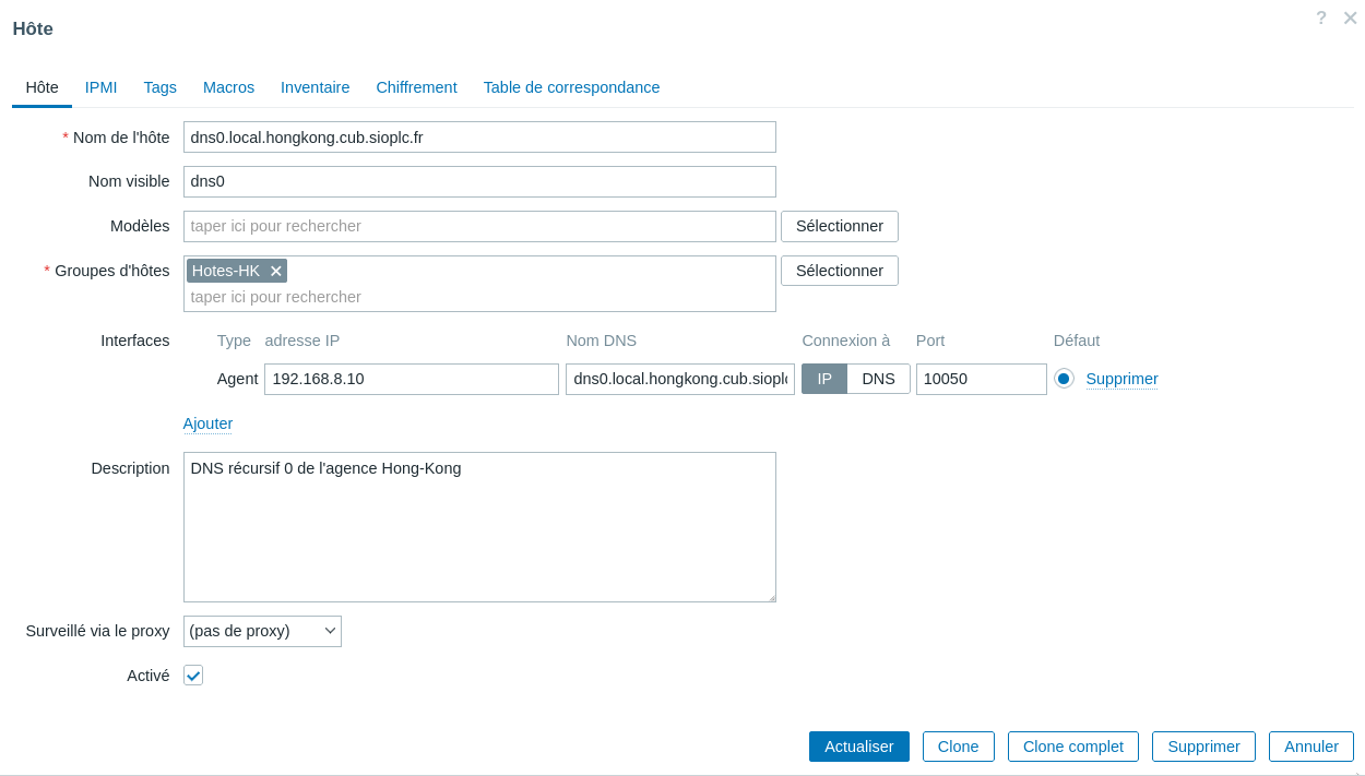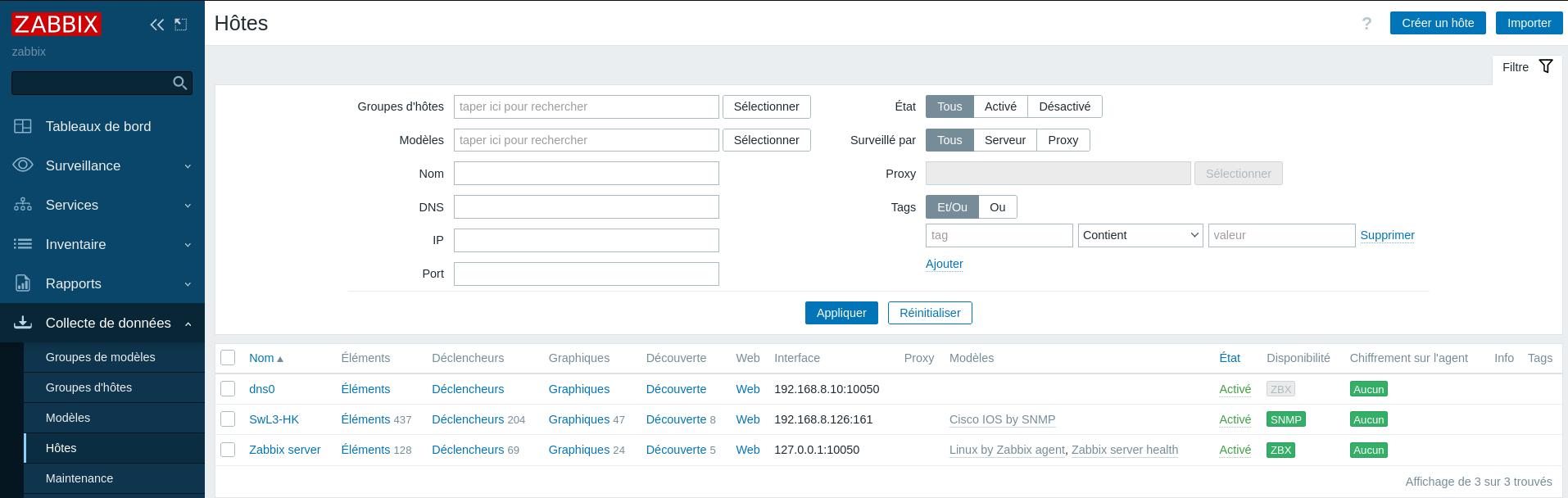 IV. Supervision des hôtes à l'aide de l'agent Zabbix