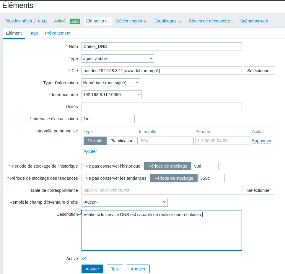 Étape 5 - Supervision d'un service réseau avec l'agent Zabbix