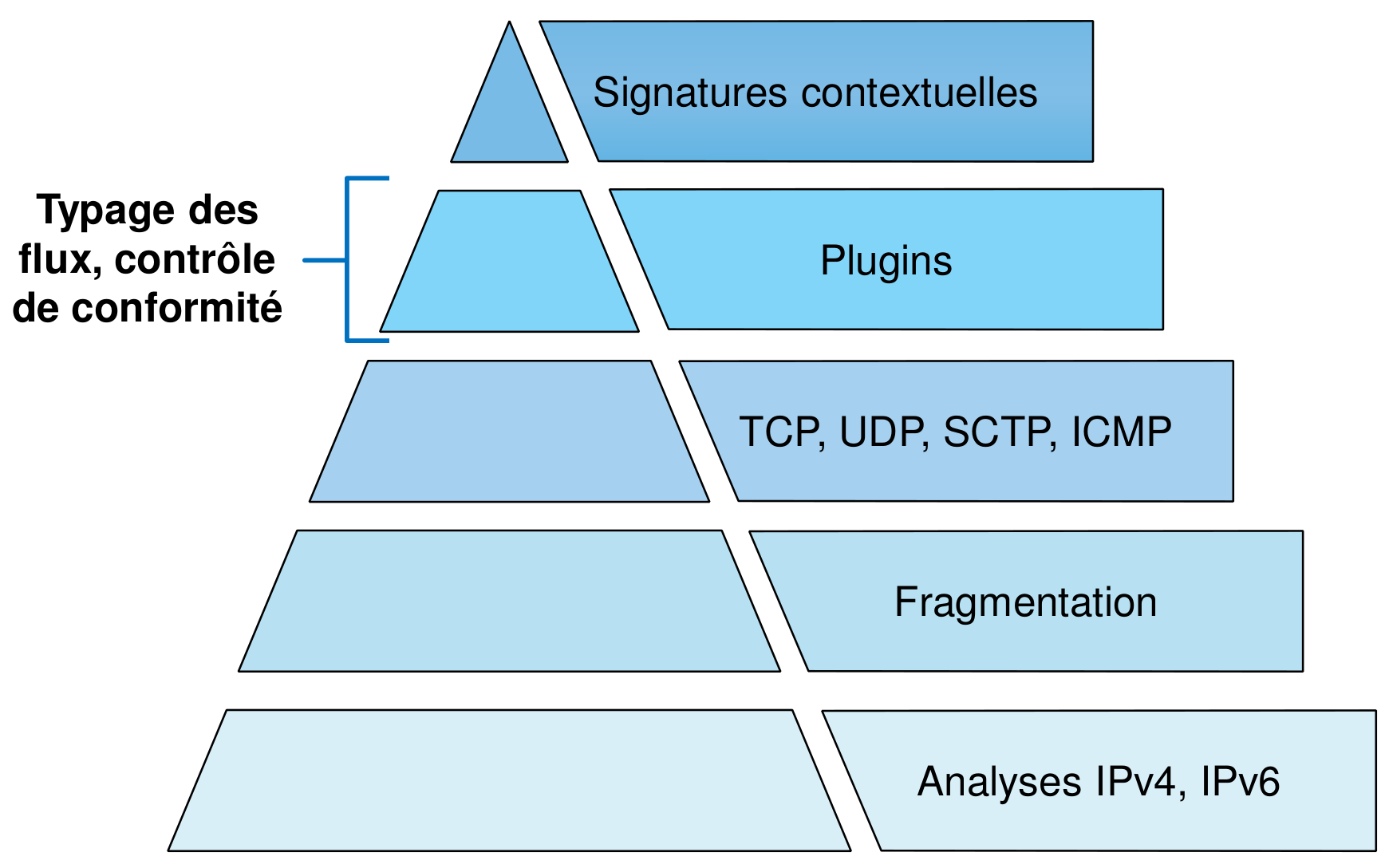 Ces analyses complémentaires sont confiées aux plugins que le moteur de prévention d'intrusion attache aux connexions afin de définir le contexte applicatif associé.