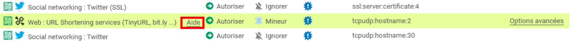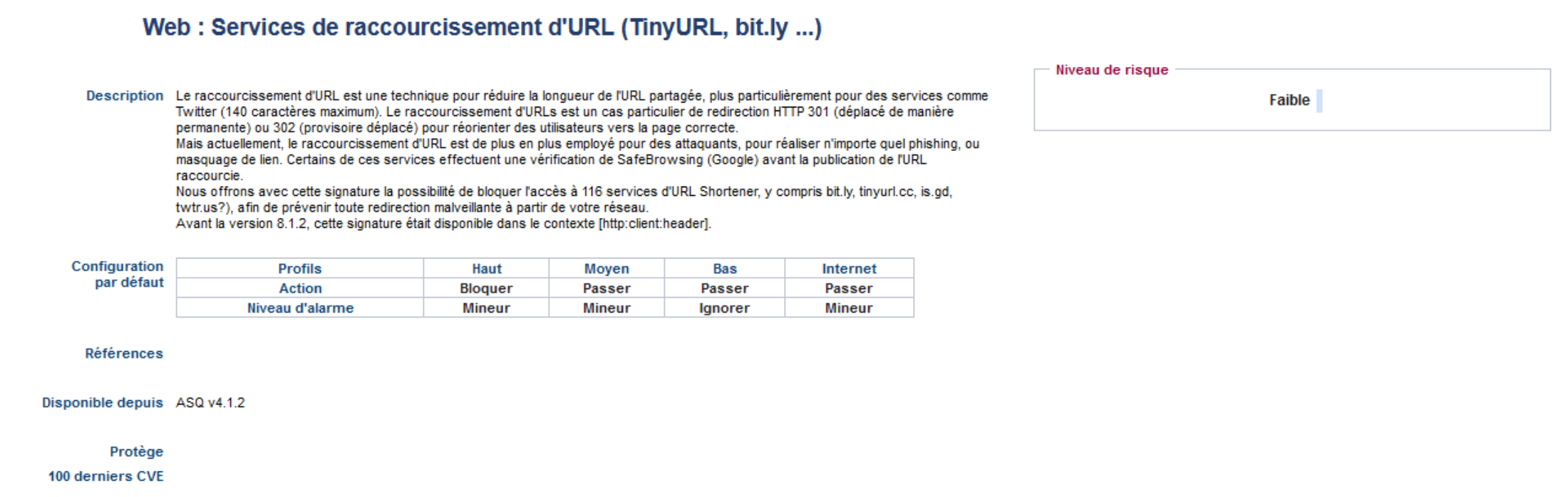 - Mineur : le moteur de prévention d'intrusion émettra une alarme mineure sur détection de l'évenement ;