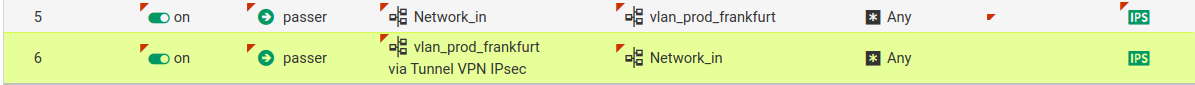 Enfin, il faut définir les règles nécessaires autorisant la communication des sous-réseaux définis dans la configuration du tunnel au niveau des règles de filtrage.